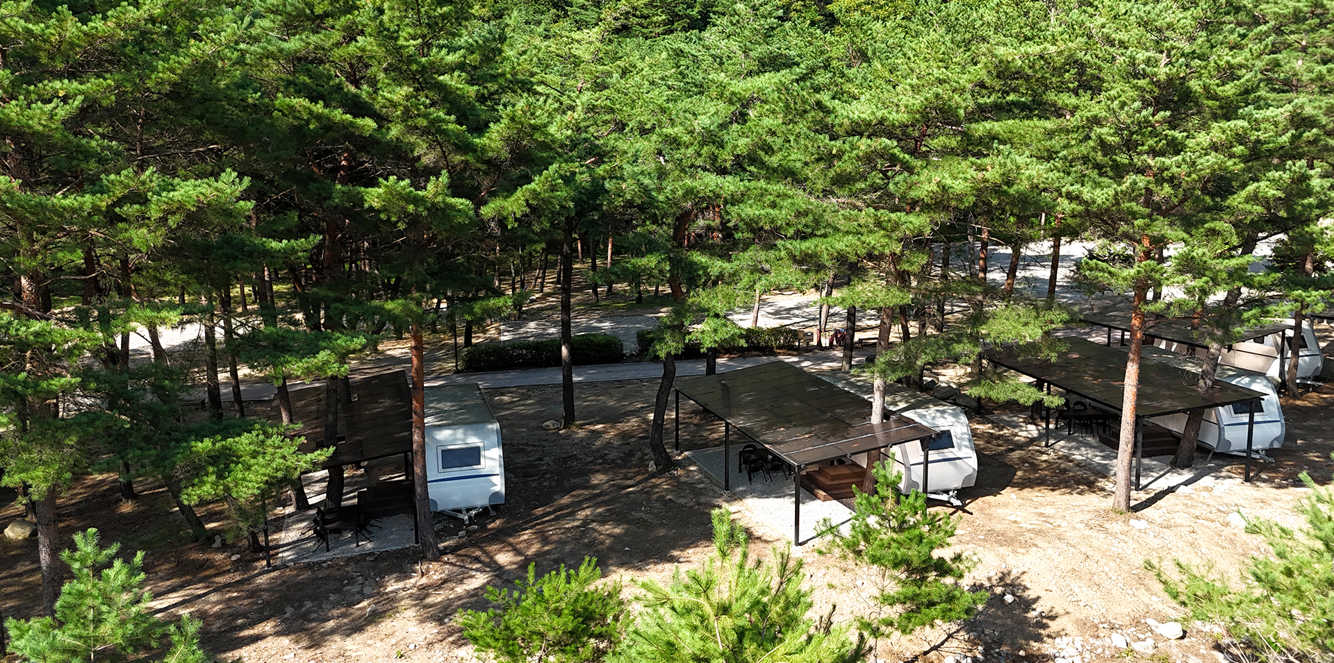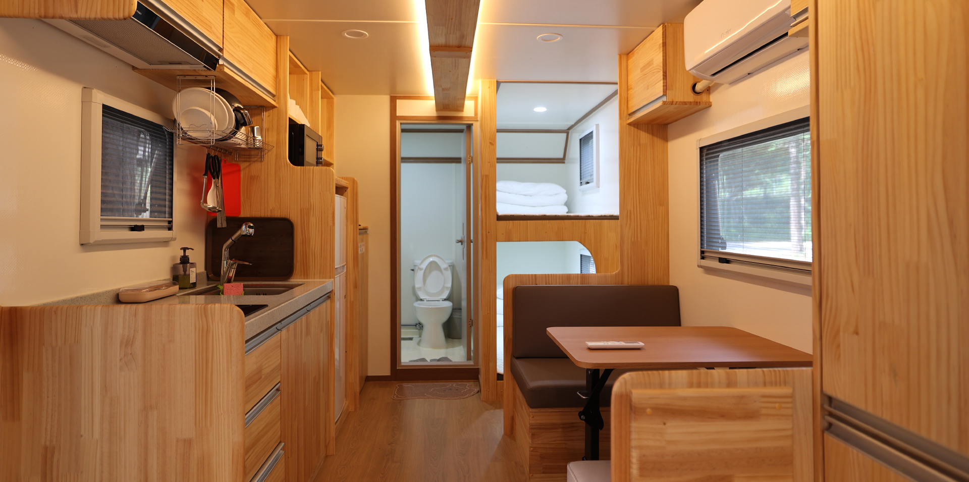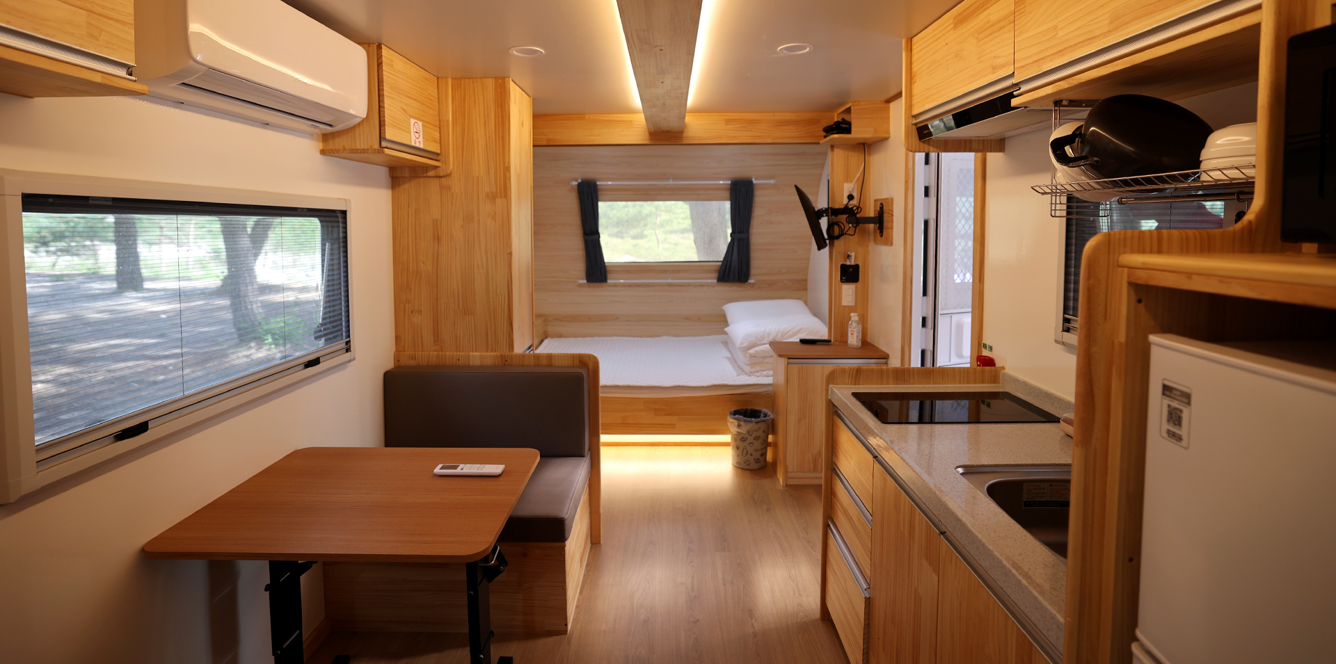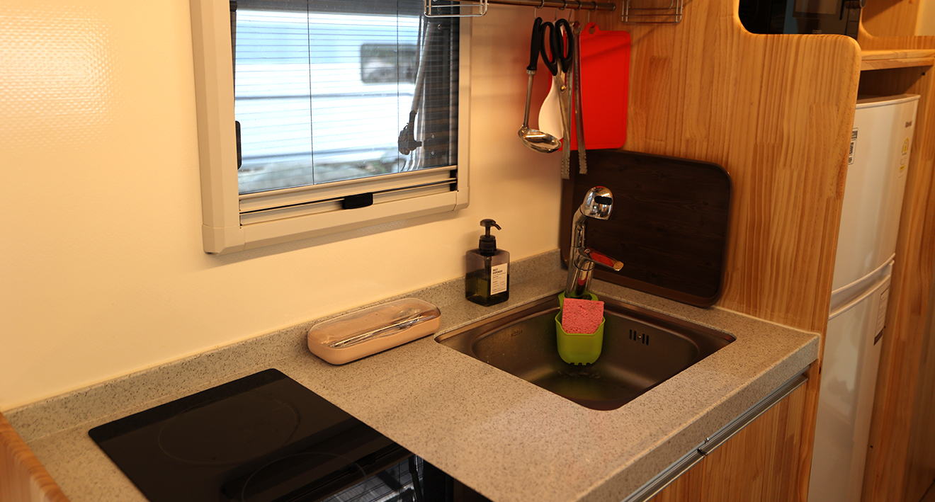- 카라반 1대, 야외데크, 공용주차장, 기본집기류(숟가락, 가위, 칼, 냄비 등)